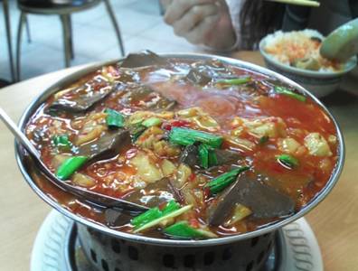 代表菜式 毛血旺又名“冒血旺”,其原料以鴨血、牛百葉、豆芽等為主,以鱔魚、魷魚等輔料來提鮮,麻、辣、鮮、香四味俱全。