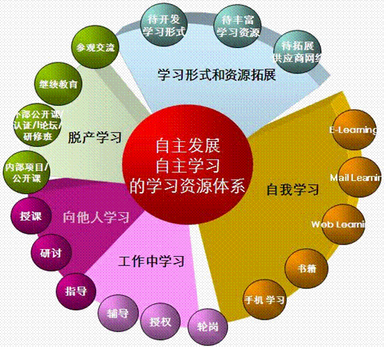 自我學(xué)習(xí):海爾大學(xué)建立了“云“學(xué)習(xí)的平臺(tái),可以滿足全球員工的24小時(shí)在線學(xué)習(xí), 通過(guò)登錄人力資源信息網(wǎng)下載maillearning資源,通過(guò)到海爾大學(xué)知識(shí)中心借閱書(shū)籍/雜志,通過(guò)手機(jī)進(jìn)行書(shū)籍學(xué)習(xí)或信息接收,通過(guò)網(wǎng)絡(luò)搜索信息與學(xué)習(xí)資源等形式進(jìn)行自我學(xué)習(xí)。
