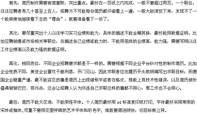 簡歷需要有針對性,它的真正意義不在于讓用人單位認識到你是什么樣的人,而在于告訴它你是吻合它招聘要求的人。簡歷做為求職者敲開招聘企業(yè)第一道關(guān)口的敲門磚,作用可以說是極其重要的。每個求職者都不希望自己的簡歷被當(dāng)作廢紙一樣丟在一邊,都希望招聘人認真地讀下去。但是,面對千篇一律或者各式各樣的求職簡歷,您的求職簡歷要如何寫才能脫穎而出,引起招聘人的注意和興趣呢?獨之秀職業(yè)顧問建議,可以把握以下幾點: